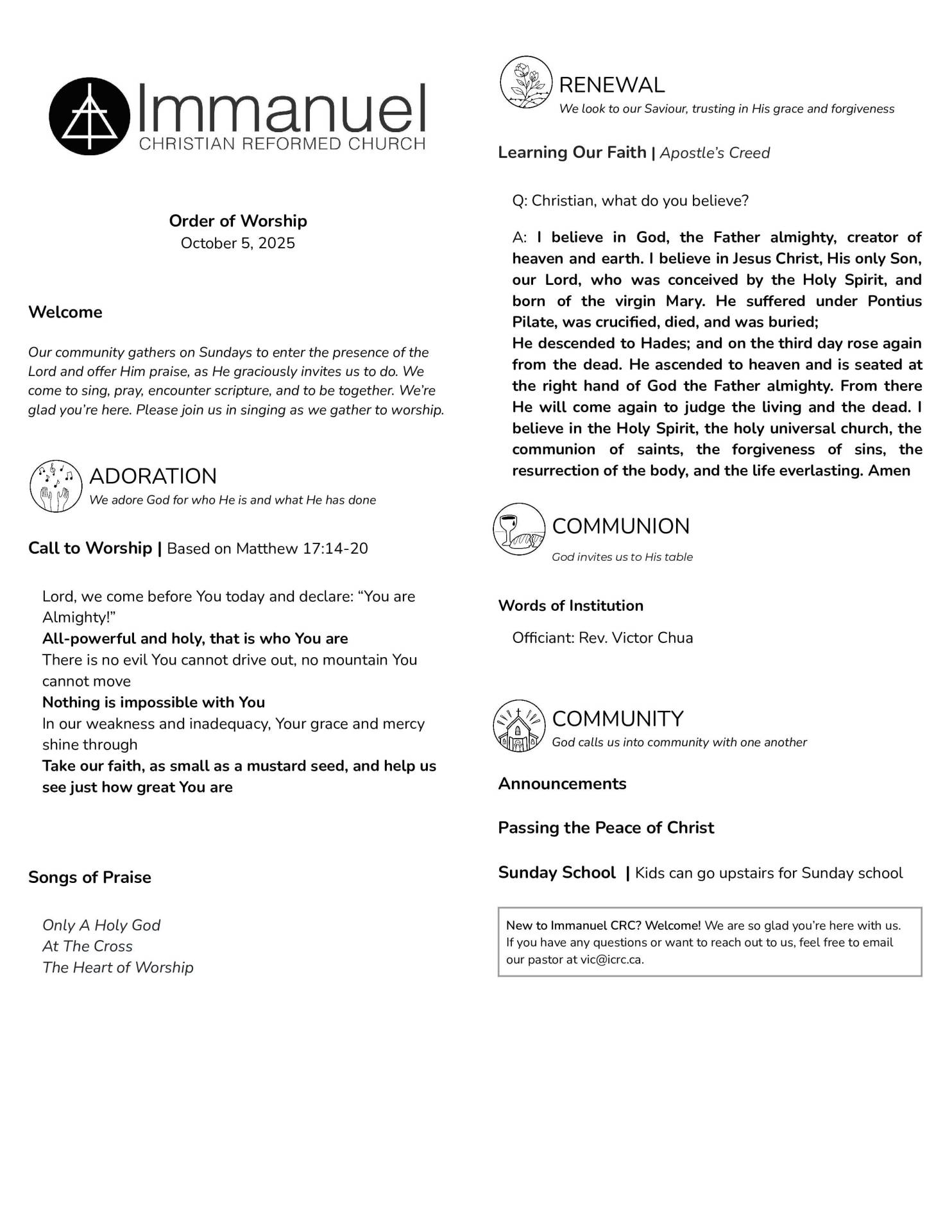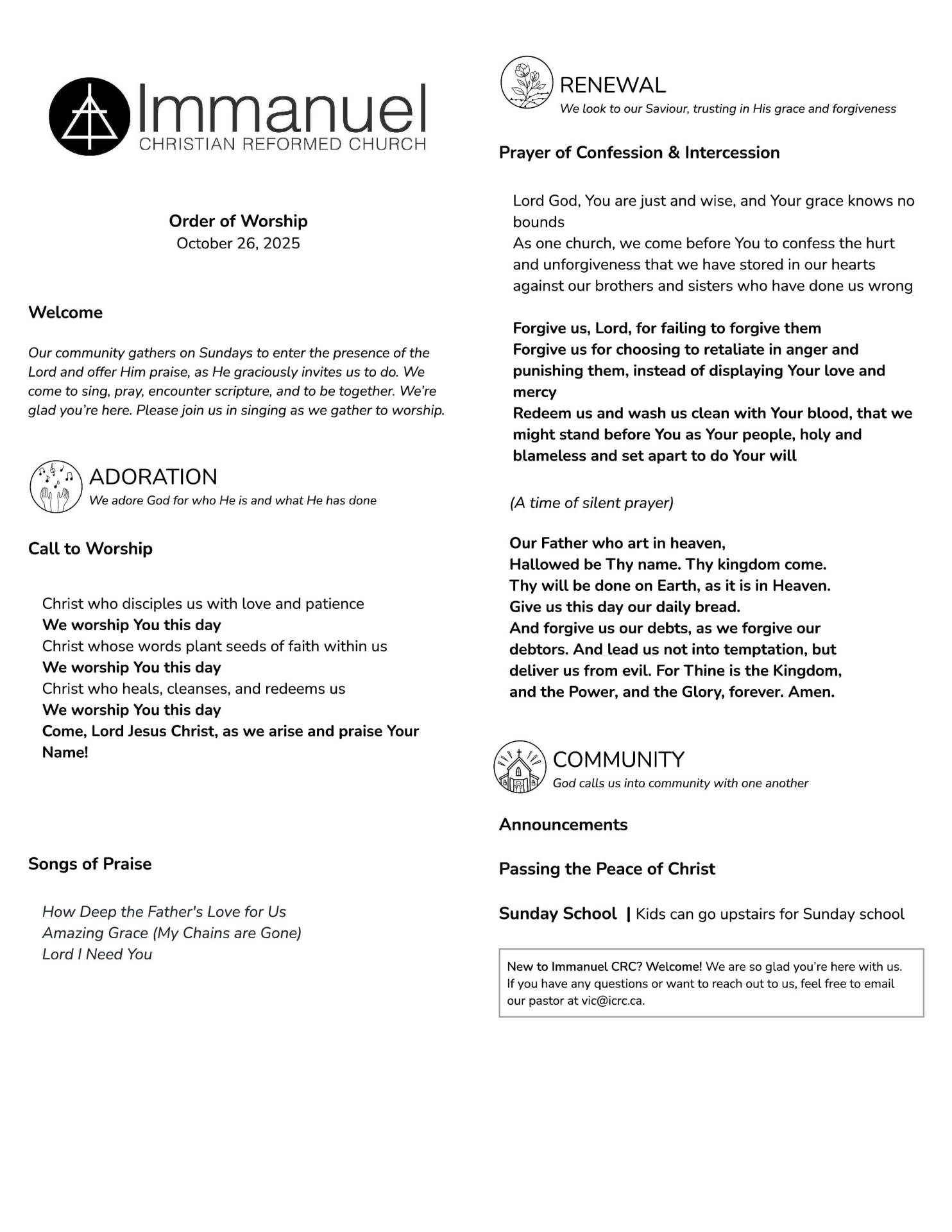 The church is about a people encountering Jesus together — sharing their joys, sorrows, prayers, and praises. If you’re new to Immanuel CRC, we’d love to get to know you today!