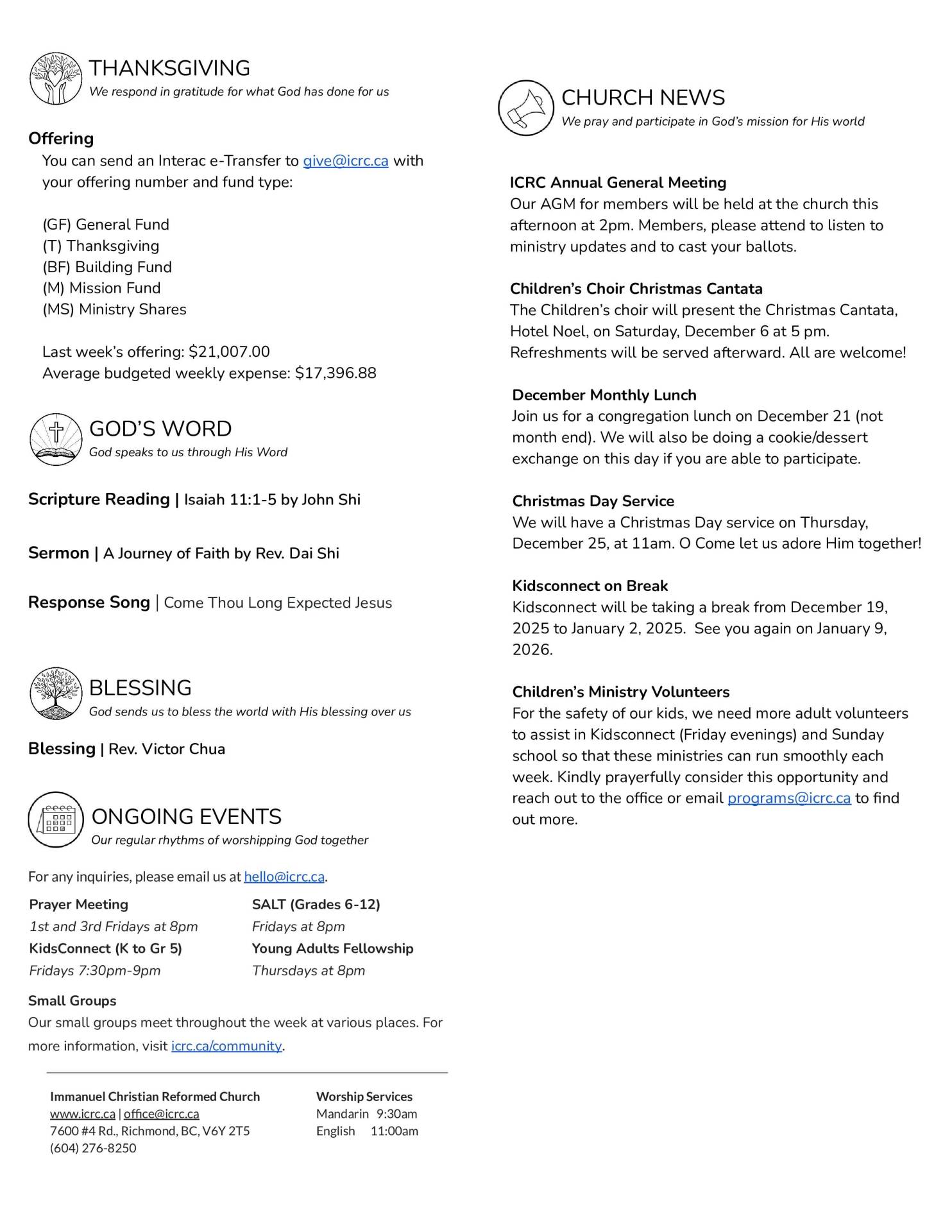Welcome to our Sunday Service Livestream! To attend our English service livestream, please check back at our regular English service times on Sundays at 11:00am.